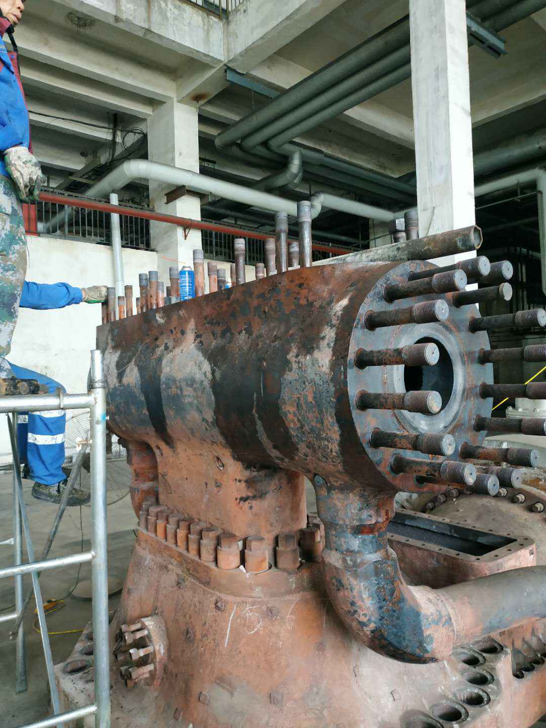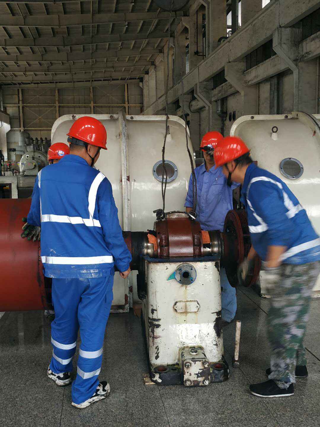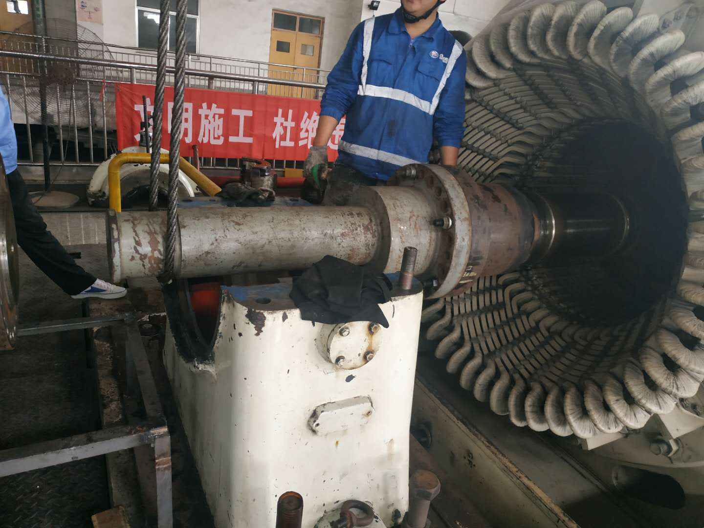 由开云手机站登录官方站入口-开云online(中国)承建的山东海能化学有限责任公司机组B15MW背压式汽轮机组(原 C25抽汽凝汽式机组)大修工程现已完成凝结水泵、油站检修工作,发电机前后轴承座基础垫铁研磨工作,目前蒸汽室螺栓的拆卸工作及发电机定子与转子的清理工作陆续启动,下气缸吊隔板工作也在稳步进行中。