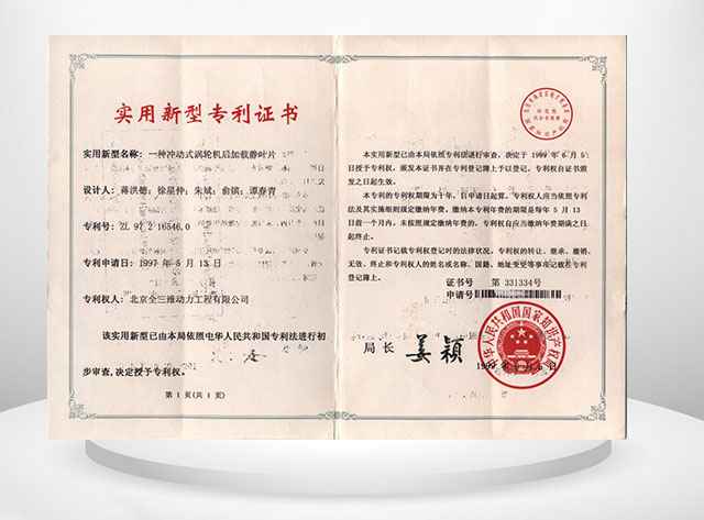 实用型专利证书